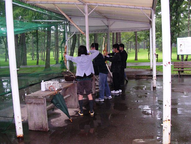 あいにくの雨の中ではありましたが、ノーザンホースパークでは、サラブレッドに間近で触れることができ、乗馬体験をする生徒達もいました。馬の他に、アーチェリーや卓球などもでき、北海道最後の研修を生徒達は楽しんでいました。