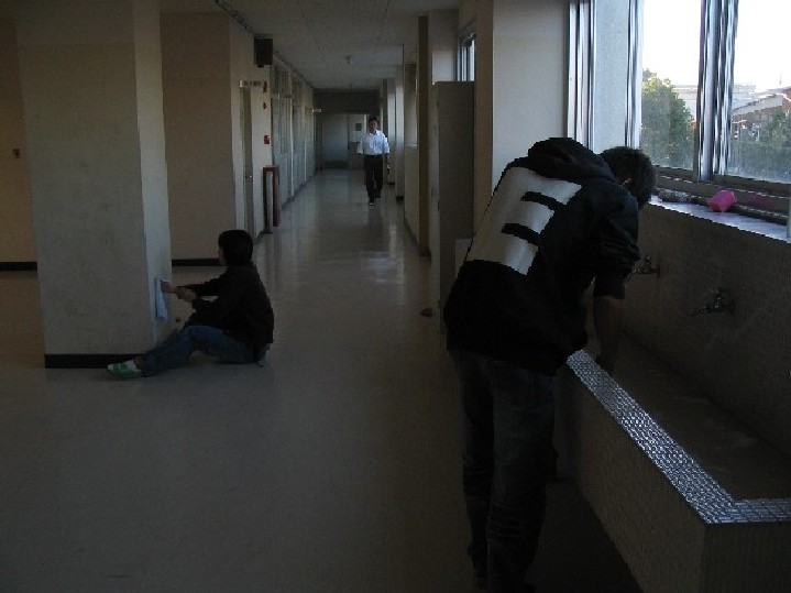 今回は、校内美化を中心に考え、4つのグループに分かれ活動しました。 ○校内の鏡を磨く ○校内の流しを磨く ○壁の足跡を消す ○藤棚前花壇の整備