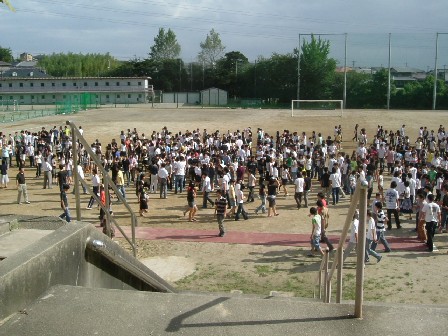 生徒には事前に実施時間を示さないでの避難訓練を行いました。