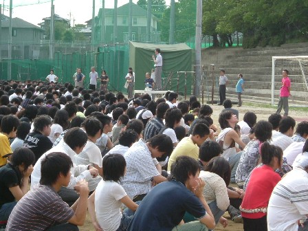 非常ベルが鳴ってから約10分でグランドへの避難を完了すること