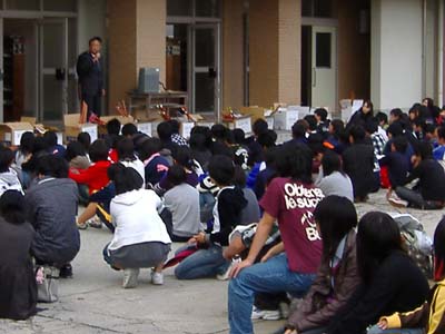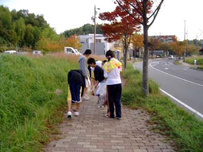 11月7日(金)、心配されていた雨も上がり、予定どおり15:50から後期ゴミゼロ運動を実施しました。 参加者は350名。今までのゴミゼロ運動で最多の参加者となりました。 生徒は、美化委員のほか、運動部員、文化部員など、1,2年生の有志320名が参加。1,2年生の全生徒の約半数が参加したことになります。 保護者・教職員30名も参加しました。 約1時間、校内の花壇の整備のほか、学校周辺、津駅までの通学路など、学校を中心に半径約2qの地域の清掃活動を展開しました。集めたゴミは軽トラック1台半、45gのゴミ袋で60袋分になりました。 終了を待つかのように雨が降り出しました。みんなで気持ちのいい汗を流した後は、PTAの差し入れのスポーツ飲料を頂きました。 日ごろ、生徒を暖かく見守り、育ててくださっている地域の皆さまのお役に少しでも立てればと思っています。