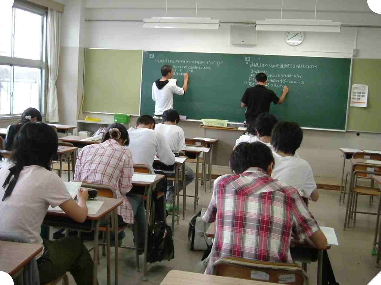 津東高校の夏休み中の補講は、1年生が9講座、2年生14講座、3年生23講座、計46講座も開講しています。特に3年生の補講は120分、生徒も先生も一生懸命です。