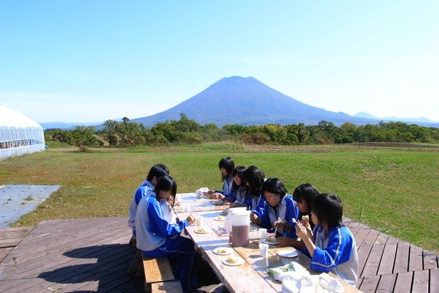 ニセコの朝は少し肌寒かったですが、本日も快晴に恵まれて、ラフティングやジャガイモ掘りなど、大自然の中で体験しました。