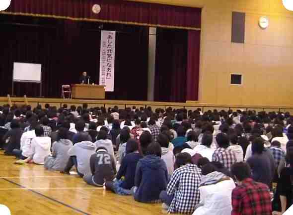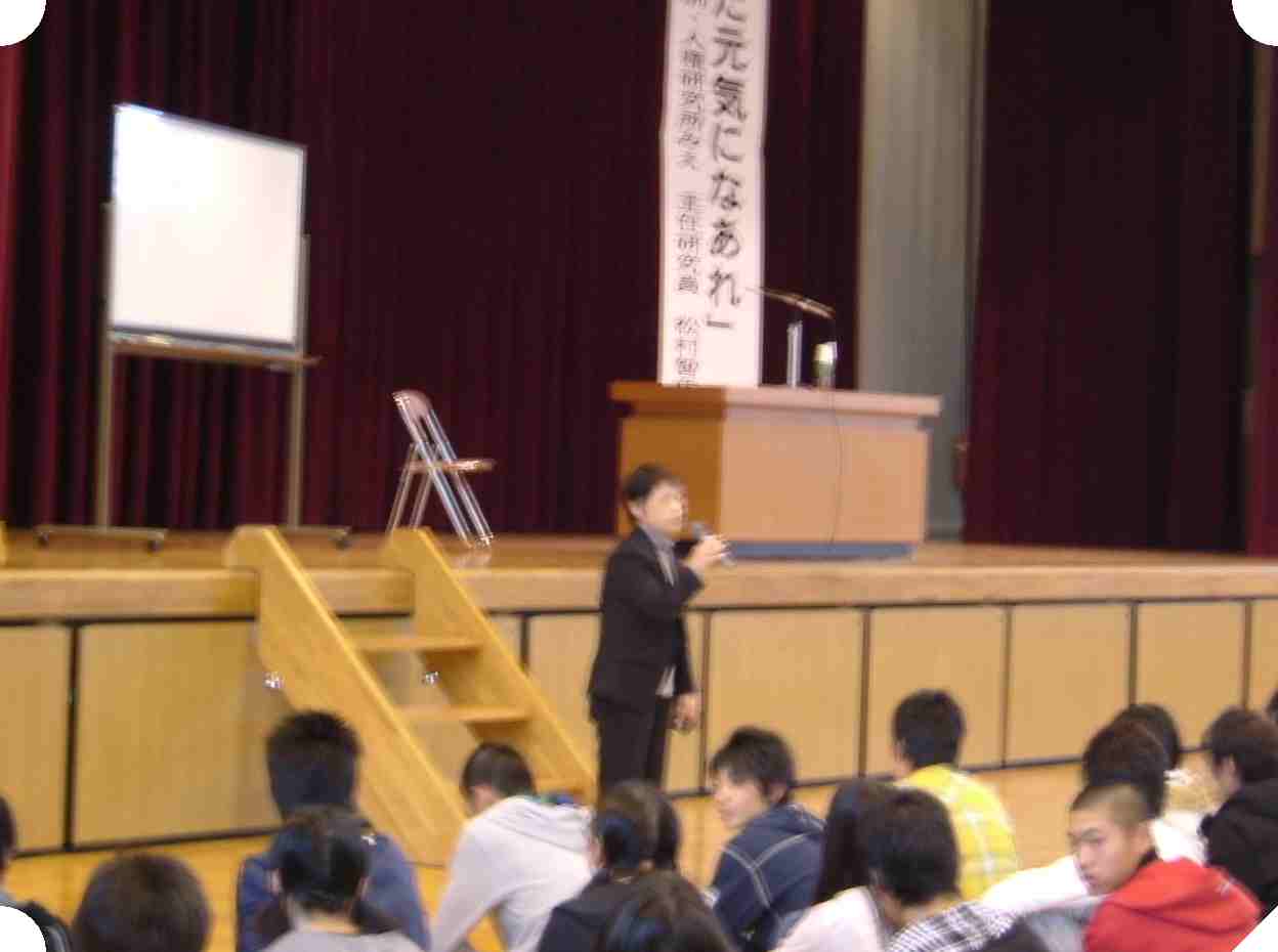 「あした元気になあれ」という演題で、愛情とユーモアたっぷりの先生のお話に、生徒も教師も思わず聞き入ってしまいました。その後、人権サークルの生徒たちと交流会を開きました。