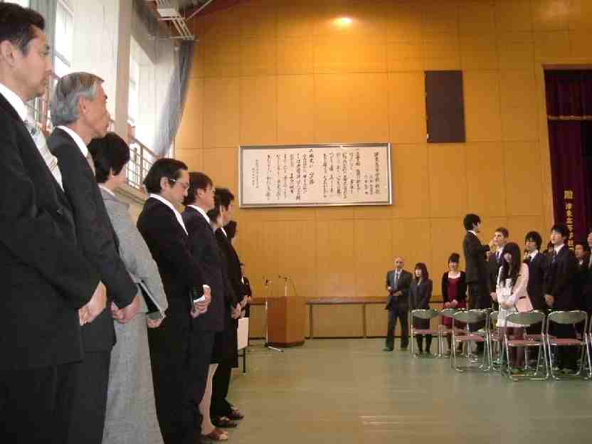 厳粛な雰囲気の中にもあたたかみのある卒業式でした。式後、卒業生がお世話になった3年担任団の先生方に歌声を贈るというサプライズもありました。