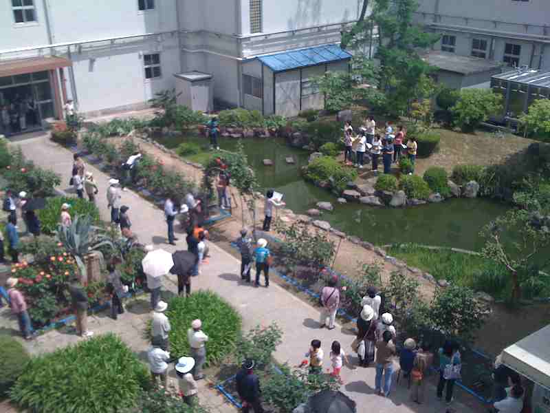 津東高校では、本日より中庭バラ園の開放を行っています。 今日は、午後1時から合唱部によるバラ園開放コンサートが開かれました。 津東高校「校歌」、滝廉太郎の「花」他5曲が歌われ、爽やかな歌声が中庭に響き渡りました。 今日の来園者は夕方の5時には500名以上となりました。地元むつみヶ丘の自治会長さんから、地域の皆様、そして卒業生の皆様まで、多くの方々に来ていただきました。本当にありがとうございました。 津東高校5期生だとおっしゃる卒業生が、お母様と来園して下さいました。今日が母の日であることを思い出させてくれる、すてきな出来事できことでした。