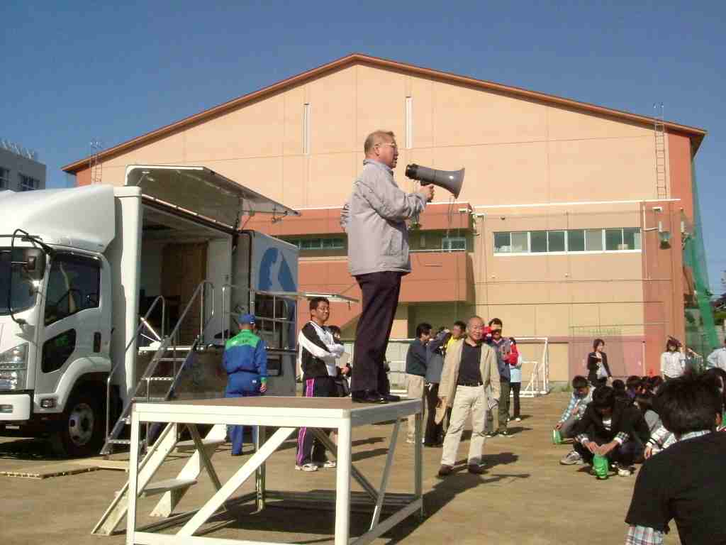 県からは東地隆司防災機器管理部長も駆けつけ、本校生徒に日頃から防災意識の大切さをやさしくお話して下さいました。