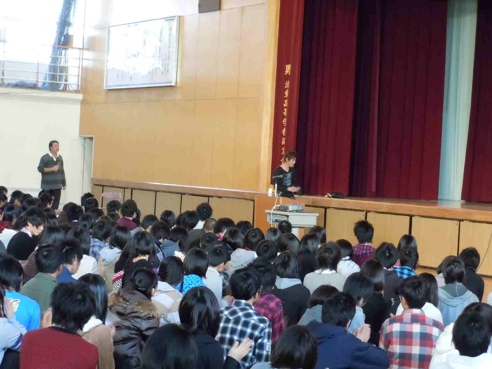 ブログや学校裏サイトにおける心ない書き込みの話から自分を大切することへの気づきまでを、飄々とした語り口で話されました。講演後、校長室の松村さんを14名の生徒が訪ね、懇談の時を持つことができました。