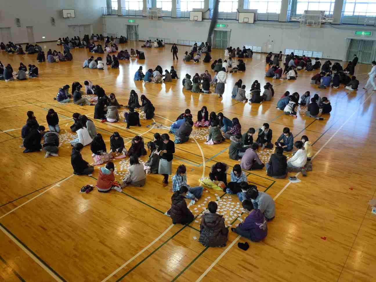 体育館のフロア全面を使用して、学年一斉に行いました。