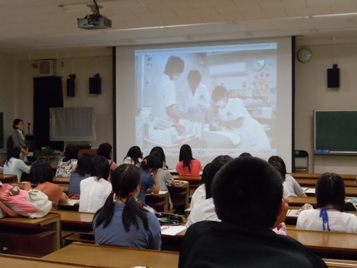 三重県立看護大学と高大連携して、本校の視聴覚教室で行われました。