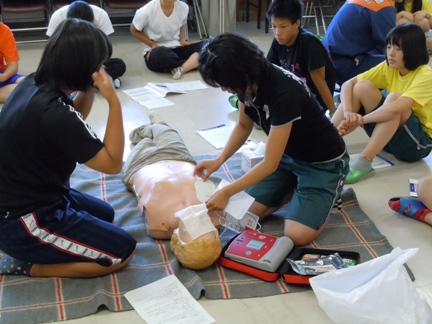 熱中症への対処や人口呼吸、AEDを用いた心肺蘇生法の講習を行いました。