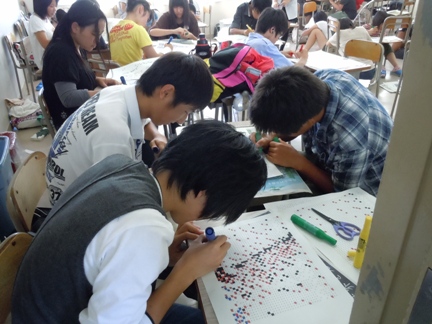 明日は総合文化センター大ホールで学園祭オープニング(舞台発表)が行われます。 今日は、総合文化センターの大ホールでは舞台発表のリハーサルが行われました。吹奏楽部、演劇部、新体操部、ダンス部などのステージ発表クラブと舞台発表クラス等が最後の調整を頑張っていました。 一方、学校内では、学園祭一般公開に向けて、クラスやクラブ、各委員会などが準備にいそしんでいました。中には「この写真撮らないで! 土曜日の楽しみだから」「ネタバレ厳禁ですよ」という生徒のみなさんもいました。土曜日の一般公開日が本当に愉しみです。