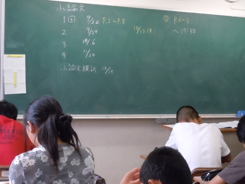 1年生と2年生では、本日7限目の総合的な学習の時間に、小論文指導を行いました。