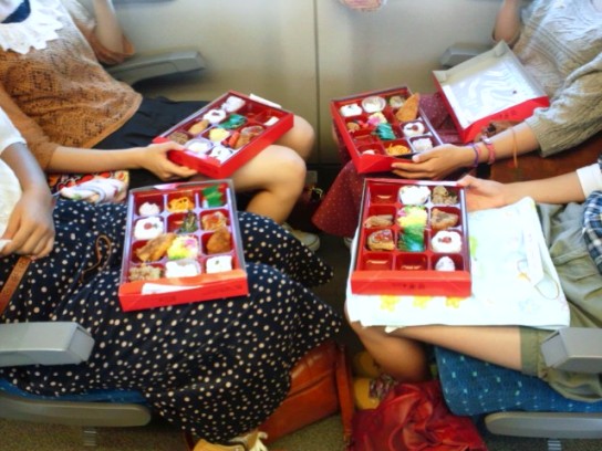 岡山駅を出発後、お弁当が配られると、新幹線の中は静かになりました。