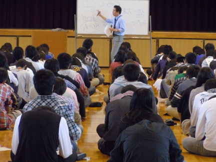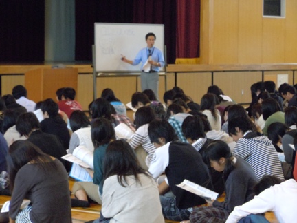 河合塾の三浦晃裕先生をお招きして、大学や学部の志望状況や大学入試のシステムの確認などを丁寧にお話していただきました。