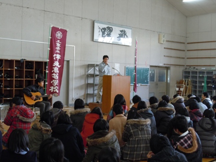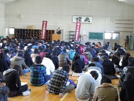 津東高校では、今日の4限目、センター試験の受験指導を兼ねて、進路・第3学年合同によるセンター試験激励会を実施しました。