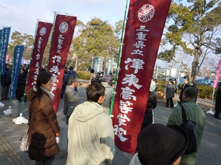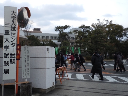 今日から2日間の日程で大学入試センター試験が始まりました。 津東高校からは280人以上が出願しました。 会場となる三重大学には、早朝から3年の担任の先生方や進路指導部の先生方、校長先生、両教頭先生などが応援に駆けつけました。縁起もののキットカットなどを用意して、会場にやってきた3年生のみなさんにプレゼントしました。 応援に駆けつけた先生方を見つけた3年生たちは笑顔で会場へと向かいました。 今日は地歴・公民、国語、英語の試験を受け、明日は理科と数学の試験を受けます。 津東高校の3年生のみなさん、本当に頑張って下さい!!