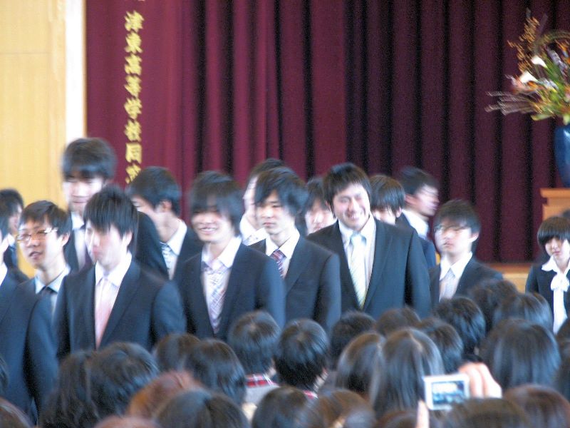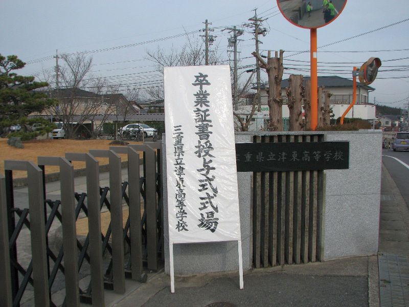 今日、第58回三重県立津東高等学校卒業式が挙行されました。 前日までの残寒の気候と一転して、春うららかな3月の日差しのもと、317名の生徒たちが本校を後に巣立っていきました。 式は午前10時前より始まり、岩間校長の式辞、竹田PTA会長の祝辞、2年生の上出聖子さんの送辞に続き、卒業生の本多美菜さんが答辞を読みました。3年間に想いをはせる素晴らしい答辞でした。卒業生のみなさんは、式後、最後のホームルームに入り、級友たちとの別れを惜しんでいました。 卒業生のみなさん、本当にご卒業おめでとうございます。