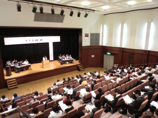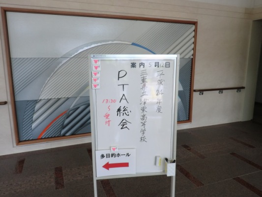 5月12日(土)午後、平成24年度PTA総会を開催いたしました。今年度は会場を学校から三重県人権センターの多目的ホールへと移して実施しました。参加者が少なく、やや寂しい感じもしましたが、昨年度の会務報告・決算監査報告・役員改選・今年度会務計画・予算について審議し、原案どおり承認をいただきました。 総会後には、河合塾 上田浩司氏の講演(演題:「親と子の大学受験」)、学年別意見交換会等を実施しました。 旧PTA役員の皆さま、これまで本校の教育活動にご尽力くださりありがとうございました。この場をお借りして、厚く御礼申し上げます。