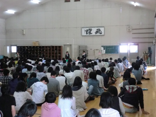 本日、「総合的な学習の時間」に、1年生は4月に受けた『文理適性検査』の結果に関する講演を、2年生は教育実習生から高校時代のことや大学生活のことなど、興味深いお話をいろいろ聴かせていただきました。
