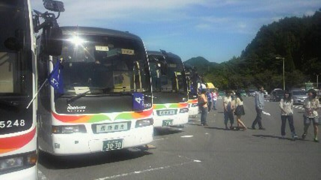 現地の天気は快晴、みんな元気に、これから長崎原爆資料館等で平和学習です。