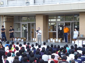 本日、放課後、ゴミゼロ運動を行いました。クラブ員と各クラスの美化委員の500名近い生徒の参加がありました。活動を始める前に、岩間校長から環境ディーが設立された経緯と意義について話がありました。