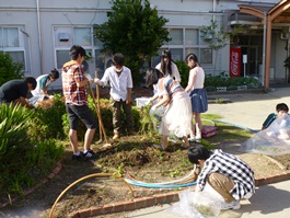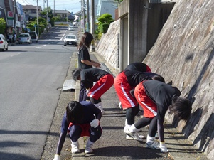 校内ではバラ園の雑草を抜いたり、藤棚の前の花壇に花の苗を植えたりしました。校外では通学路を中心にゴミを拾ったり、雑草を抜いたりしました。 美化活動の最後にはPTAからの差し入れのスポーツ飲料が参加した生徒に配られました。