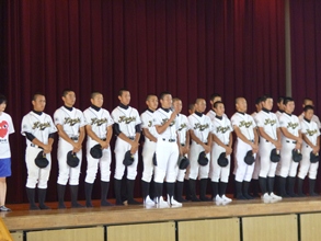 クラスマッチの開会式に先だって、野球部、フェンシング部、新体操部の壮行会を行いました。