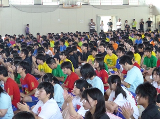 それぞれのキャプテンの挨拶では「これまで支えてくれた方々に感謝し」という言葉がありました。続いて岩間校長、生徒会長から激励の言葉、最後は選手の健闘をたたえ全校生徒から大きな拍手がありました。