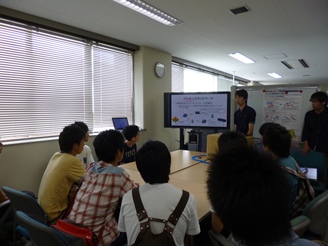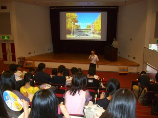 3枚目は静岡県立大学を見学し、大学側の先生による大学説明を受けている様子です。