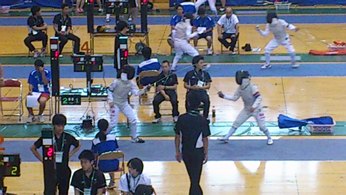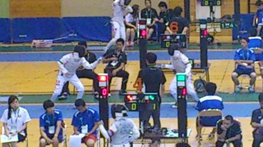 8月4日(日)のフルーレに出場した鯖戸さんは予選リーグ1勝3敗、8月5日(月)のエペに出場した永合さんは予選リーグ4敗で、いずれも残念がながら予選リーグを突破することはできませんでした。 しかし個人戦の翌日から行われた団体戦では1・2回戦を突破し、3回戦まで駒を進め、ベスト16の成績を残すことができました。 1回戦 ○5−3 城ノ内(徳島) 2回戦 ○5−2 大分豊府(大分) 3回戦 ●1−5 翔洋(熊本)