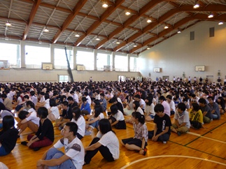 最後に「部活動や勉強に取り組む目的は、「一人一人が幸せに生きる力」と「幸せに生きることのできる社会を作る力」をつけること」であり、「4ヶ月間ある二学期を充実したものにしてもらいたい」と締めくくりました。
