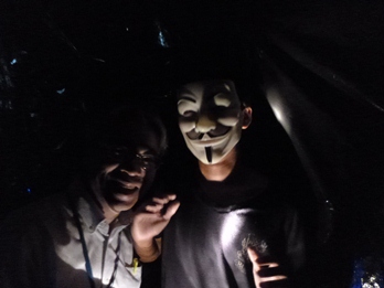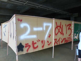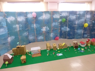 学園祭のクラス企画の中には、お化け屋敷などの「体験型アトラクション」があります。1年1組、5組がお化け屋敷、2年7組が迷路、2年8組がミニチュアの模型の前で写真をとって巨人の気分を味わうことのできるアトラクションでした。