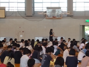 本日、7限目の総合的な学習の時間に1年生は外部から講師を招いて、「小論文ガイダンス」を行いました。今後、1年生は総合的な学習の時間、6時間程を使って、小論文に取り組みます。