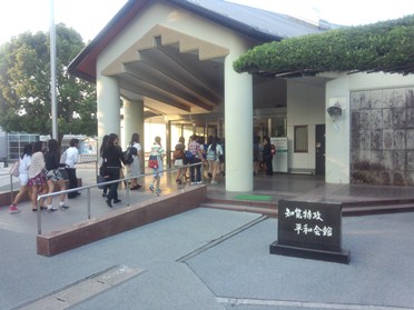 講演後、知覧特攻平和会館を見学しました。限られた時間での見学でしたが、特攻平和観音堂、復元された三角兵舎に足を運んでいる人もいました。