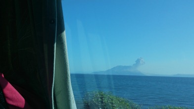 さきほどの噴火で至る所に灰があり、クルマが走ると灰が舞い上がり、かなり埃っぽいです。どうも花粉症の人は大変なようです。