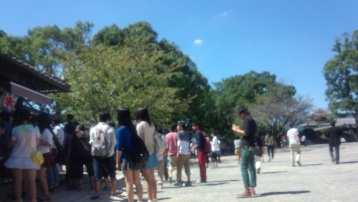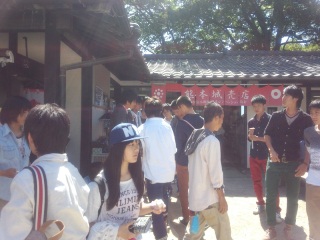 城内の散策を終え、土産物屋さんに生徒が集まってきました。
