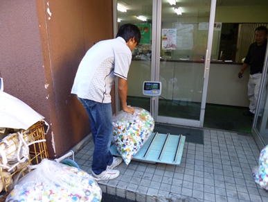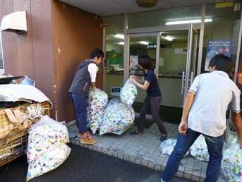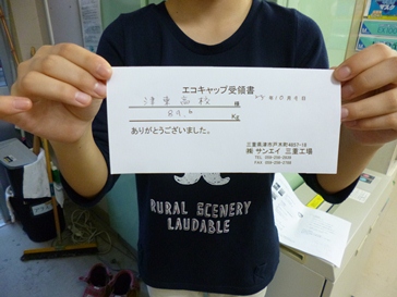 生徒会では環境リサイクル運動と命のワクチンを支援する運動の一環として、ペットボトルのキャップ回収(エコキャップ回収運動)に取り組んでいます。運動を始めたのは平成20年(2008年)の前期生徒会からで、今年で5年目となります。 今年度は10月9日に校内で回収したキャップを生徒会顧問の先生と役員2名とで津市戸木町にある(株)サンエイに持ち込みました。45Lのゴミ袋で約10袋、計ってもらうと89.6KGになりました。