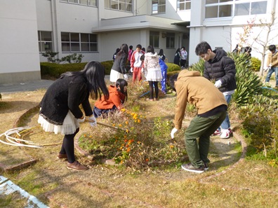 約1時間の作業を終え、校内、校外もきれいになりました。参加してくれた生徒のみなさん、お疲れさまでした。