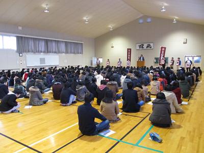 本日4限目、武道場で、あさってから2日間行われる大学入試センター試験を受験する3年生を集めて直前指導が行われました。