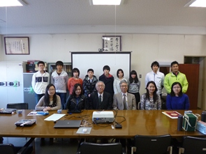 その後は昼食をとりながら、双方から質問が出されました。高校生からは「日本に来て、驚いたことは?」「クリスマス、バレンタインディーもありますか?」「日本語を上達する秘訣は何ですか?」などの質問が出されました。大学生からもいろいろな質問が出され、特に「時間のあるとき何をしていますか」との質問に対して「寝ています」と本校生徒が答えると、「私も同じです」と返しがあり、笑いが起こりました。