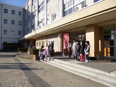 「おはようございます」と元気な声。朝、8時20分過ぎから、生徒昇降口前に並んだ生徒会執行部役員の生徒が、登校してくる生徒に挨拶の声掛けを行っています。期間は2月10日(月)から今週一杯。