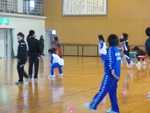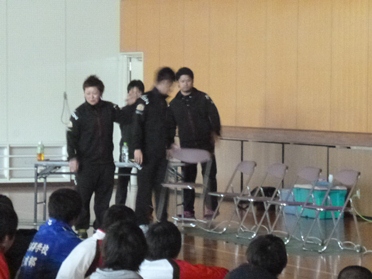 講義後、ダイナミックストレッチを用いたウォーミングアップや、アイシングの方法についての実技講習がありました。