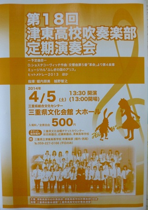 本校吹奏楽部の定期演奏会が今週末、4月5日(土)にあります。今回で18回目を迎えます。開催日時・場所等は下記のとおりです。