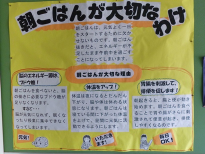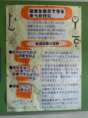 「健康が基本」、保健室前には、生徒の健康に対する意識を啓発するための掲示があります。健康を維持し、充実した高校生活を送ることを願ってやみません。
