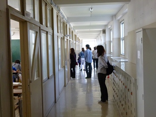 教室にはなかなか入りにくい雰囲気があるようで、廊下で授業の様子を参観する保護者の方もありました。中には担任の先生の授業ということで、多くの保護者の方が教室に入り、後ろから授業を参観する姿もありました。