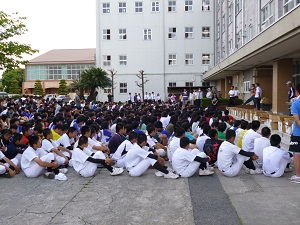 本日、放課後、ゴミゼロ運動を行いました。クラブ員と各クラスの美化委員の約560名の生徒の参加がありました。活動を始める前に、岡田教頭から環境デーが設立された経緯と意義について話がありました。