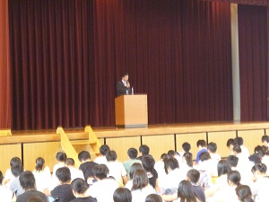 本日、1学期の終業式が体育館で行われました。 松岡校長先生より、夏休みを迎えるにあたり、「やる気」のコントロールについてのお話がありました。 やる気は自分でコントロールできる。夏休み中に次の4点を実践してほしい。@自分を客観的にみる。Aやる気をコントロールする方法をみつける。B経験して体に覚えさせる。C自分でその機会を求める。
