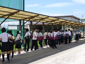 午前中本校では、高校生の補講と重なっていたため、校舎内の見学や大半の文化系クラブを見学してもらうことはできませんでしたが、グラウンドや体育館、武道場、弓道場等で活動している運動クラブを中心に見学してもらいました。 午後は、開会行事の後、パワーポイントによる学校紹介、在校生・卒業生による座談会、部活動紹介等が行われました。