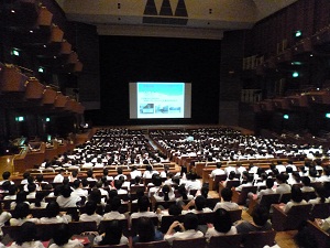 本日、平成27年度入学生対象の学校説明会を実施しました。午前中は学校で部活動見学、午後は場所を変え、三重県総合文化センター大ホールにて本校の説明を行いました。中学生をはじめ保護者や引率の先生を合わせると約1,400名近くの参加がありました。